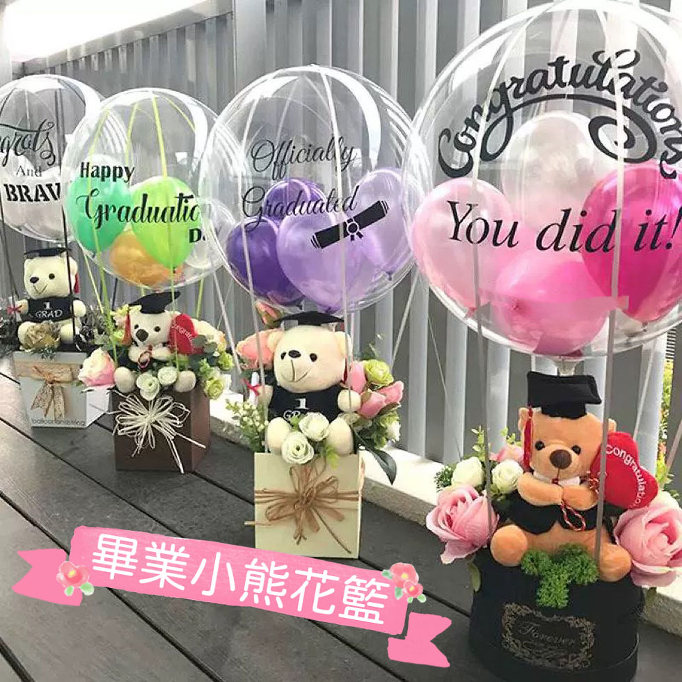畢業小熊氣球花籃